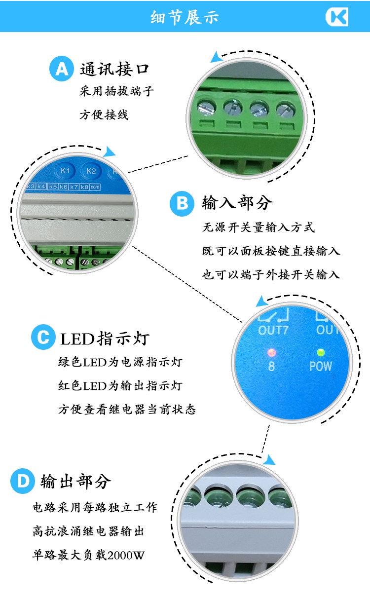 網絡/RS232/RS485總線2/4/6/8/10/12路輸入輸出10A照明模塊可編程